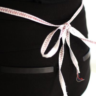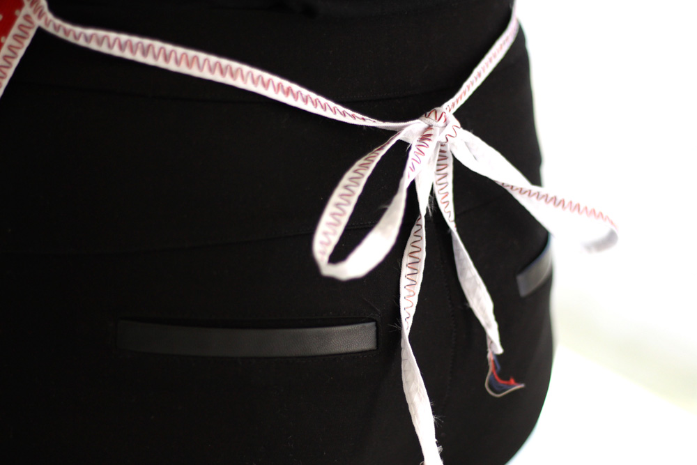 Confeccionado em tecido 100% poliéster, com acabamento costurado em viés TNT.